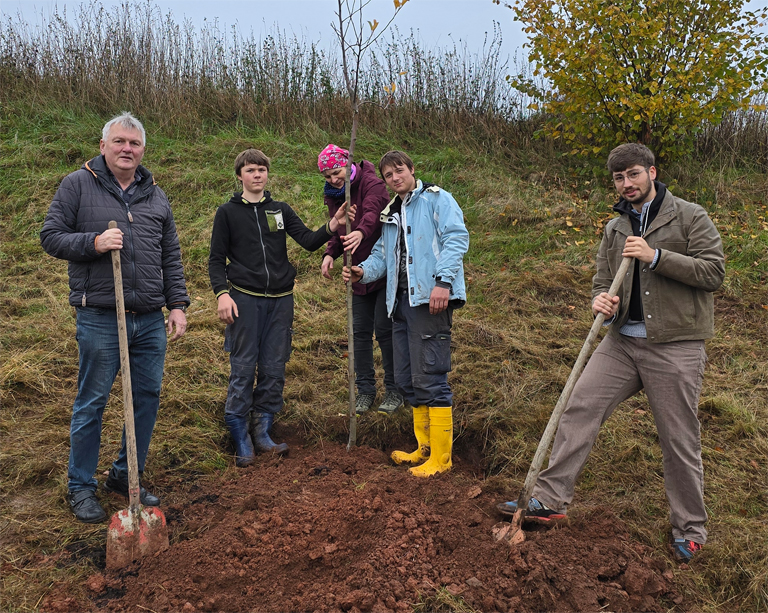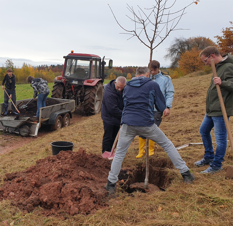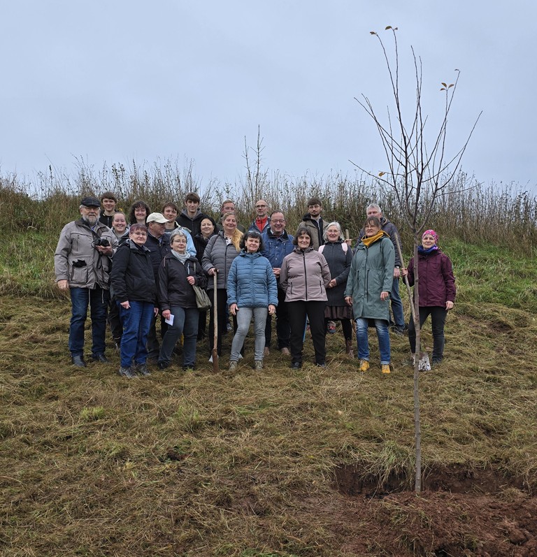 Am Sonntag versammelten sich Gemeindeglieder, Bürgermeister Lein, Pfarrer Bergmann und weitere Gäste am Kirchenfeld beim Vereinsglücksschacht. Nach den Grußworten des Bürgermeisters und Worten von Pfarrer Bergmann, verbunden mit Dank an den Sponsor „eins energie in sachsen“, erlebten wir eine kleine Andacht und sangen gemeinsam das Kirchenlied „Ich singe dir mit Herz und Mund“. Dabei wurde uns bewusst, dass alles Wachsen und Gedeihen unter Gottes Segen steht. Anschließend pflanzten wir mehrere Obstbäume. Jung und Alt halfen einander – und der schwere Lehmboden verlangte uns dabei einiges ab. Doch gemeinsam haben wir es geschafft. Nachdem die Bäume gut im Boden standen, machten wir noch ein Gruppenfoto, hielten ein Gebet und beschlossen unser Zusammensein mit dem Choral „Großer Gott, wir loben dich“.